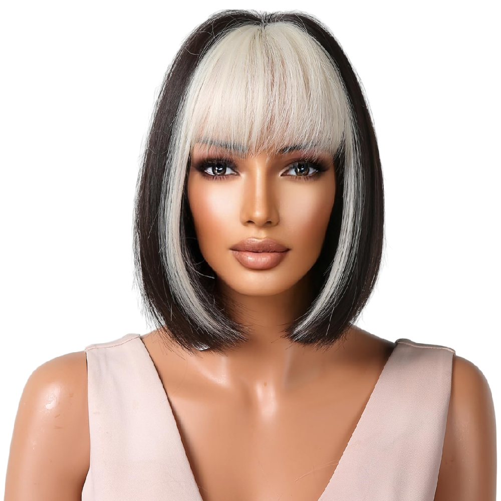 Jessie's Wig 10 Inch Short Bob Wig With Bangs Synthetic Hair Black With Platmium Blonde 1 Pc/Pack