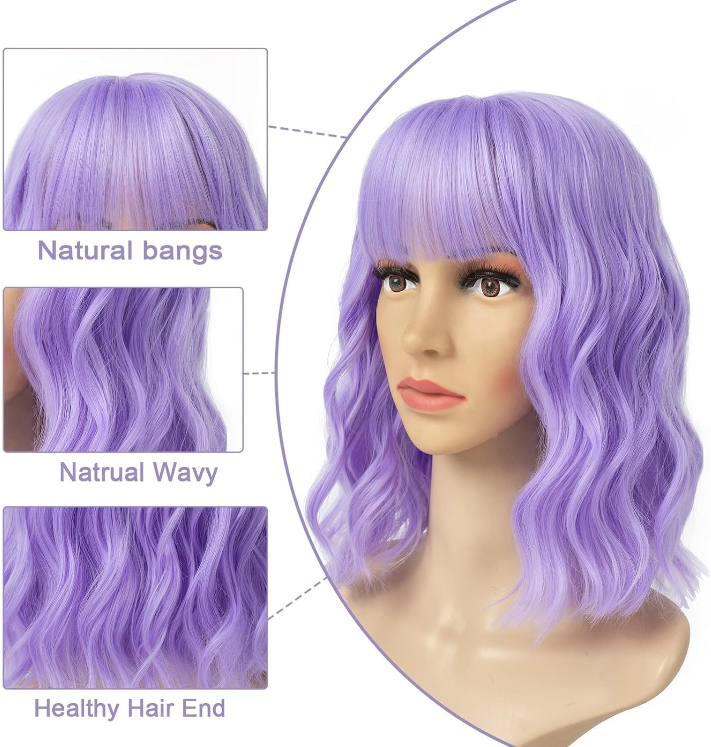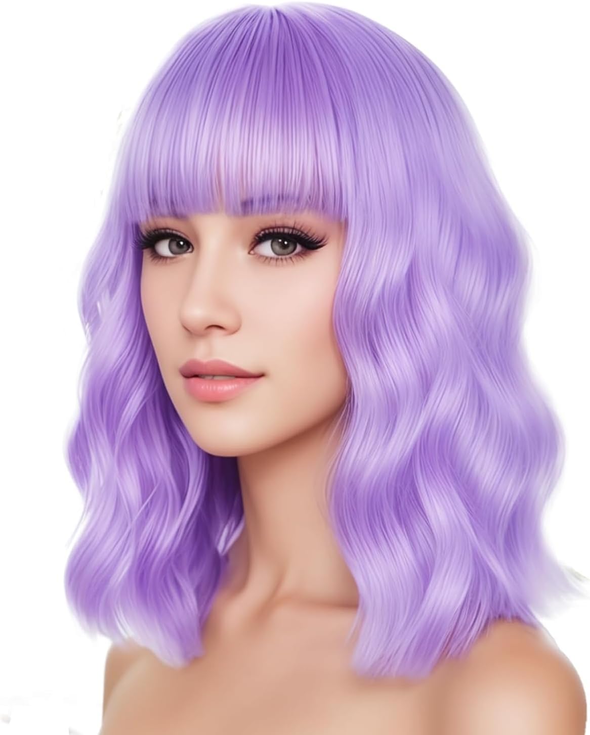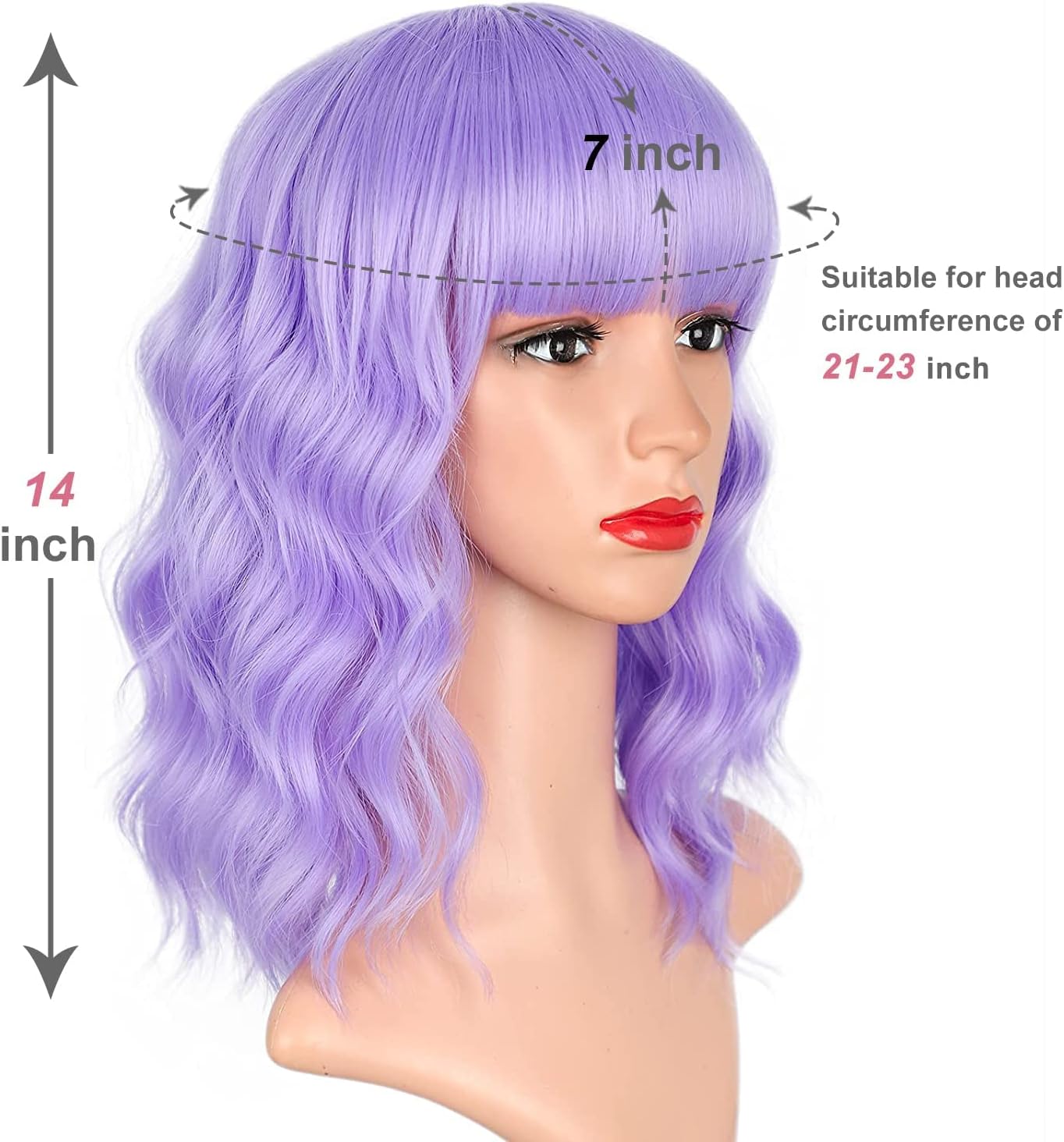 Jessie's Wig 14 Inch Short Bob Wavy Wig with Bangs Synthetic Hair Purple 1 Pc/Pack