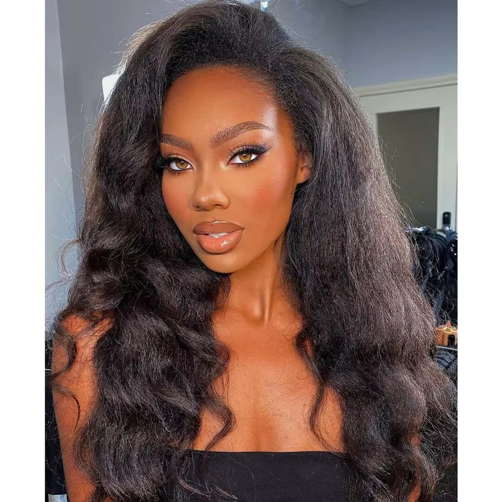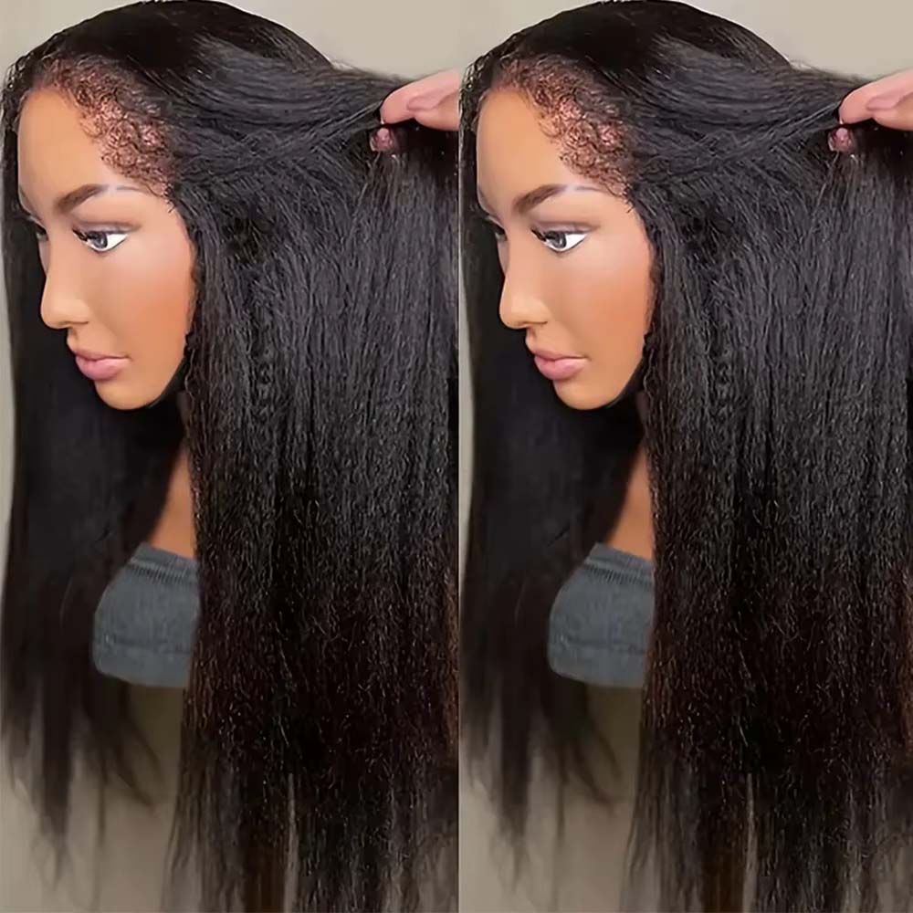 100% Human Hair Kinky Straight Wig:Made from unprocessed human hair, cut from a single donor. Can be dyed, permed, bleached, straightened, or restyled as your own hair—tangle-free and shedding-free.