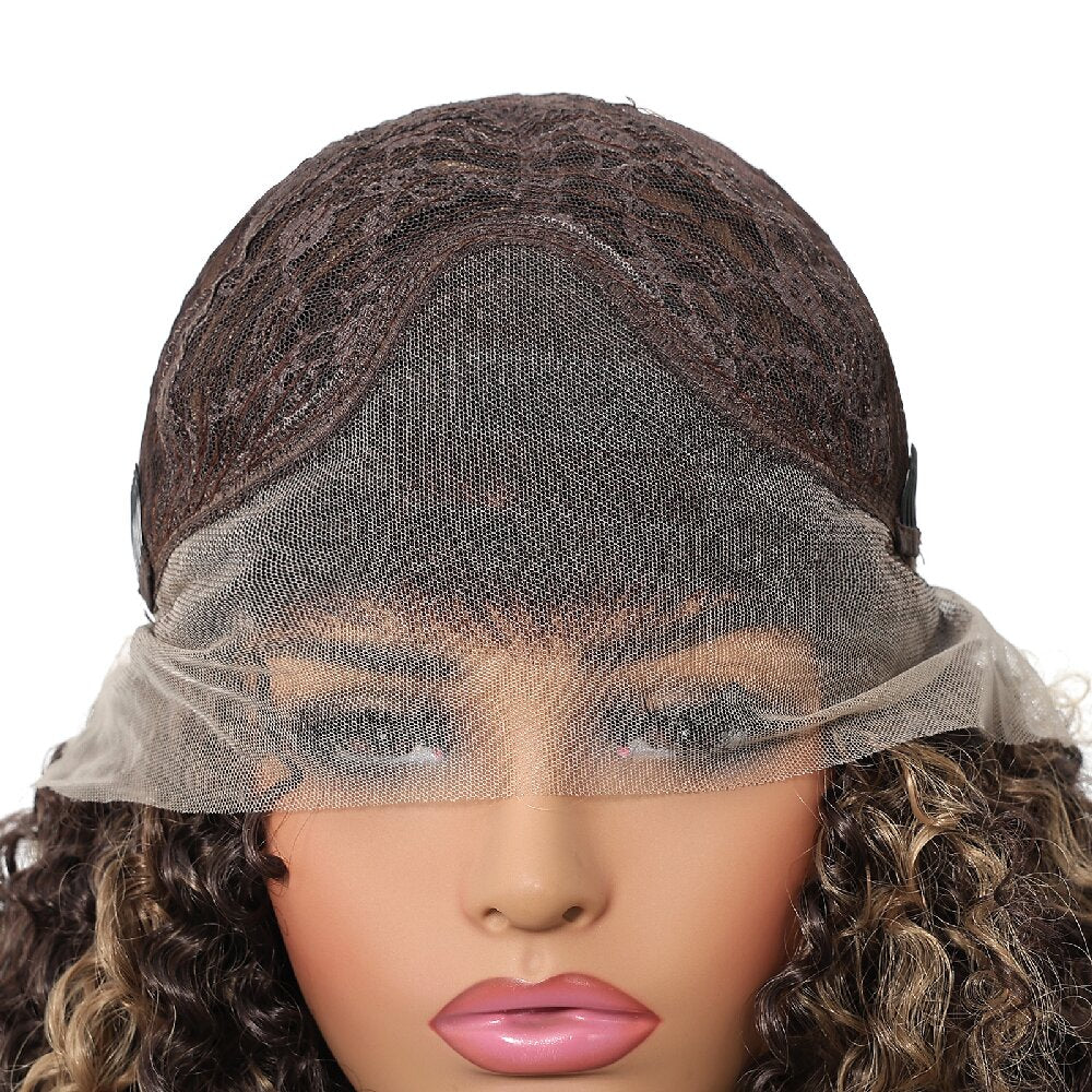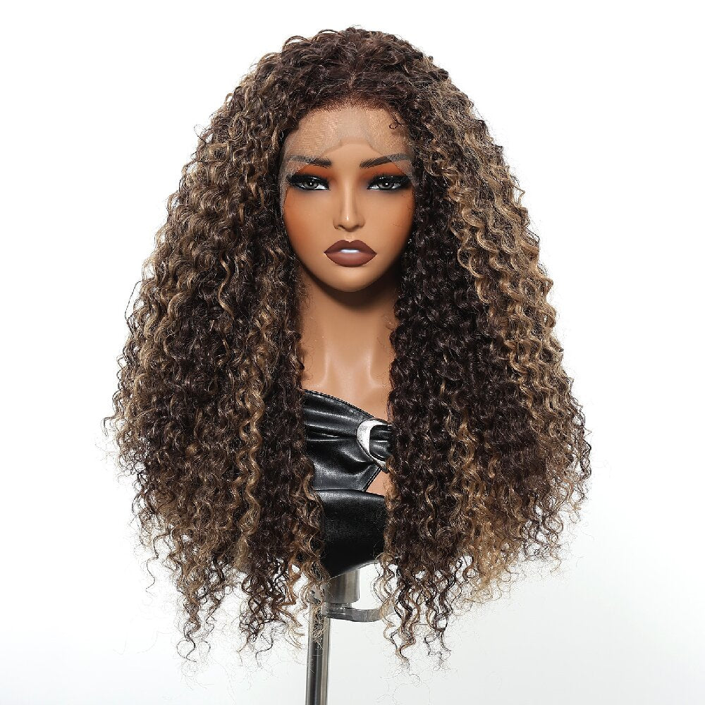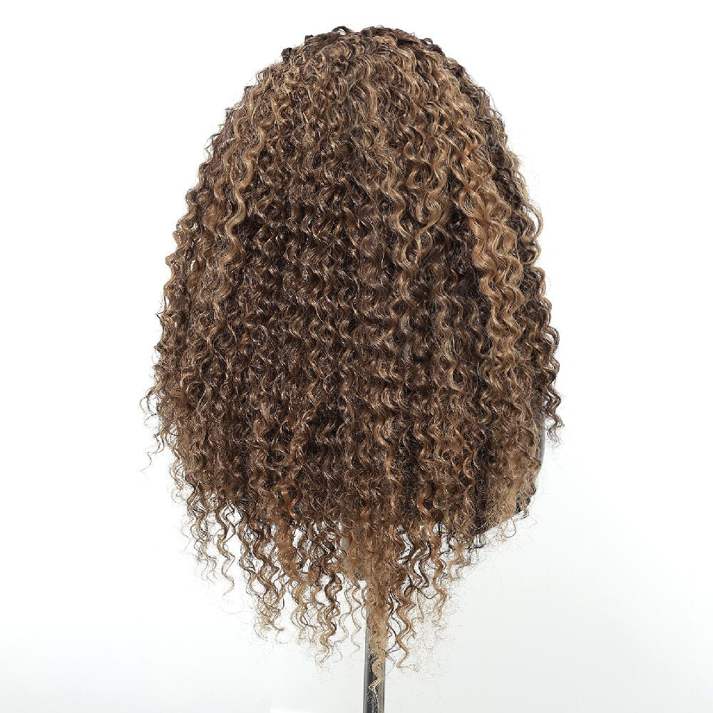 【Blonde Highlights curly wig style】: 150% density natural crimps curls deep wave wig touch more soft and fluffy. Blonde Highlights color looks more realistic and excellent; Feel like human hair and scalp;