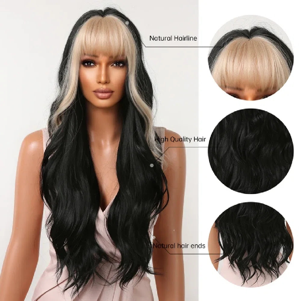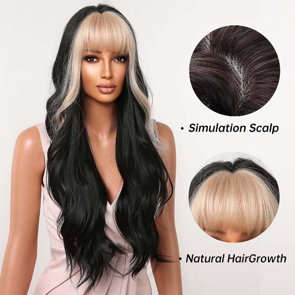 • 【Premium Synthetic Wig】The Long Wavy wigs for women is made of high quality heat resistant synthetic fiber which is very soft and silky.You don’t need to dyed your own hair to get a beauty style.