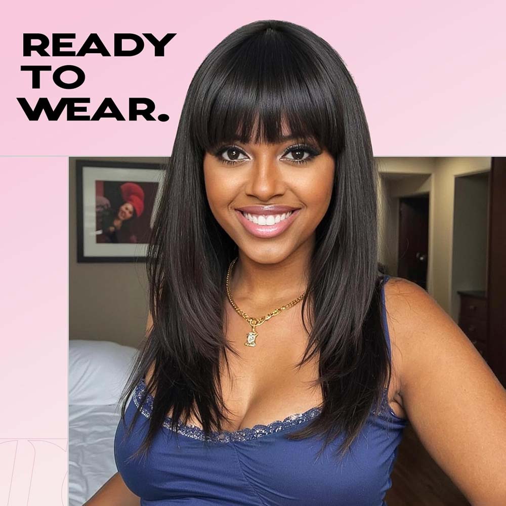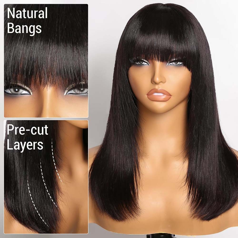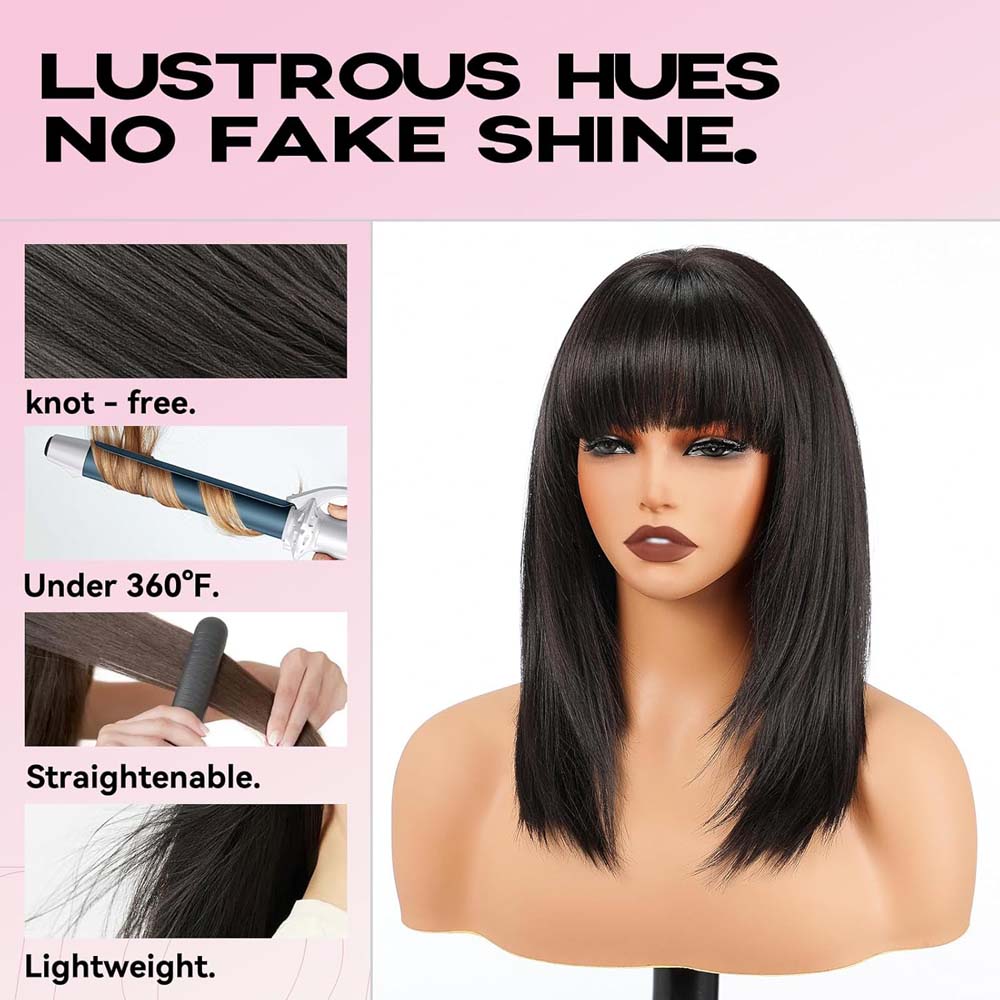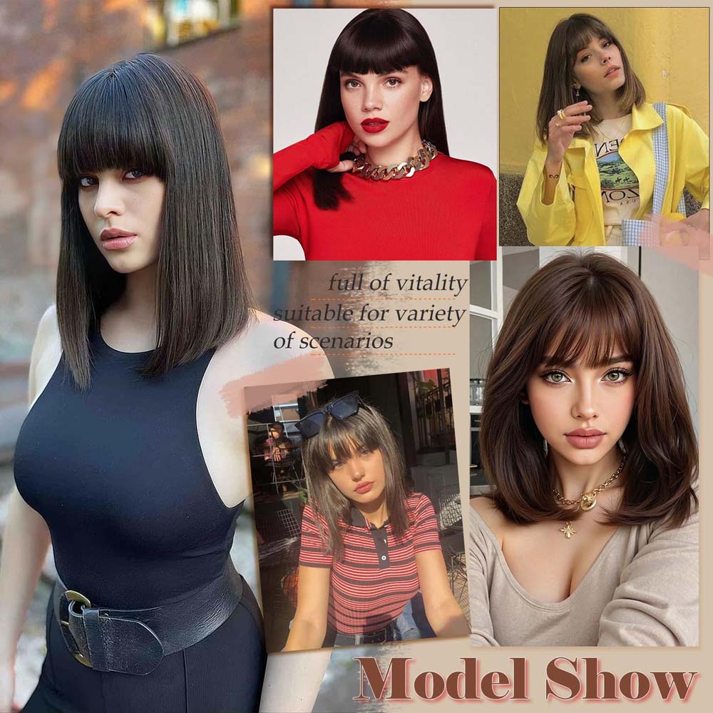 Hair Advantage:Machine Made Short Bob Wigs with Bangs,Comfortable and Breathable.No Tangles,No Shedding,No Lice,No Chemical Synthetic Hair,No Animal Hair.Every Procedure is Inspected by Worker.Soft and Healthy,No Smell,Can be Dyed and Permed as you like,Last for Long with Good Hair Care.