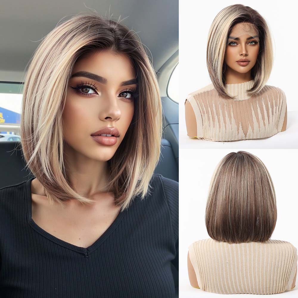 【Effortless NoGlue Application】: Simply position and go—our short bob lace front glueless wigs require zero adhesives, making this glueless synthetic wig the ultimate timesaver for fast, flawless installs