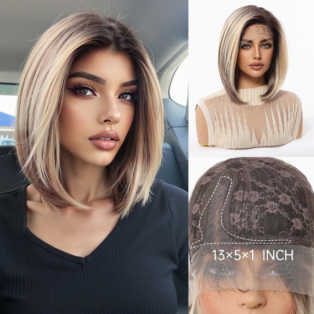 【High-Quality Imitation Human Hair Fibers】: This synthetic lace front bob wig delivers silky-smooth, straight strands that mimic real hair.