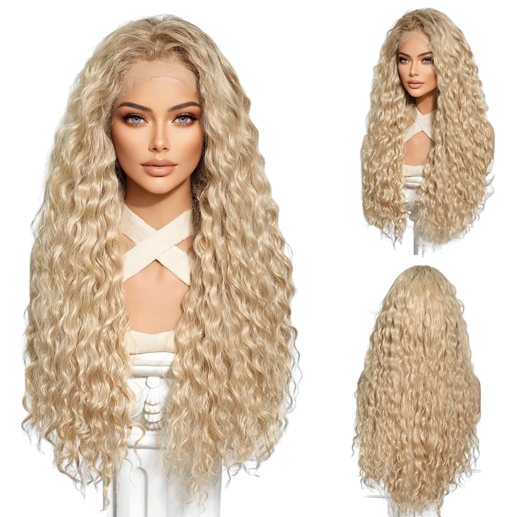 【Upgrade synthetic curly lace wig materia】: This Blonde curly wig is made of high quality heat resistant imported soft synthetic fiber; The temperature can be up to 180 ℃ ( 356℉ )