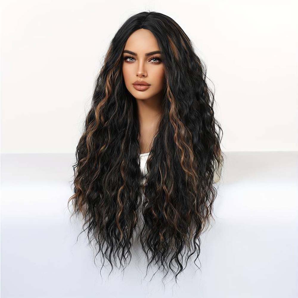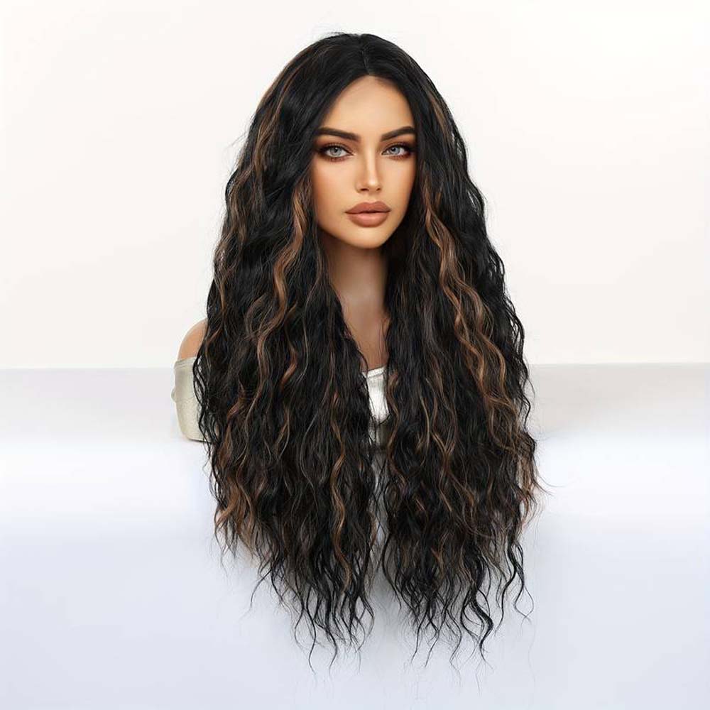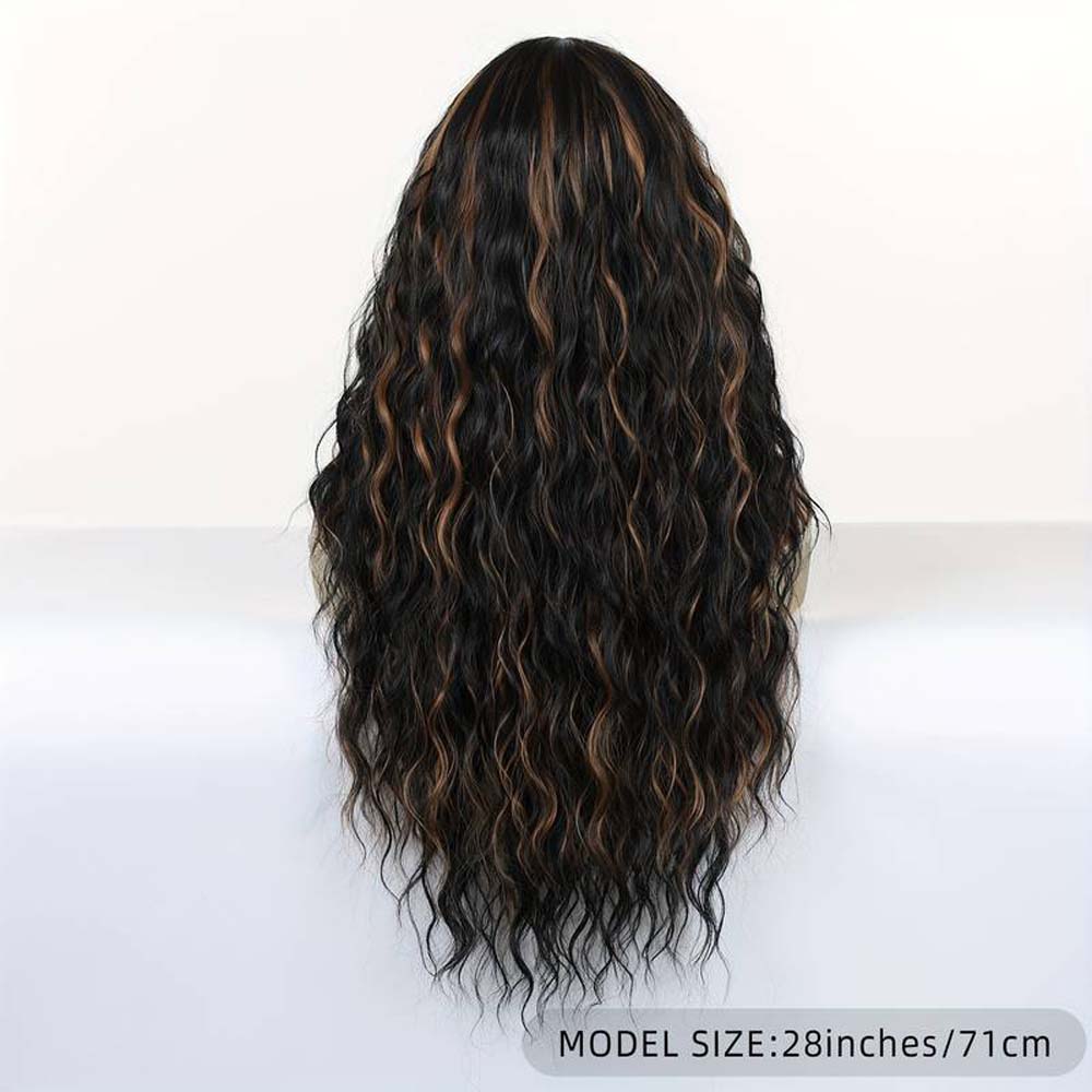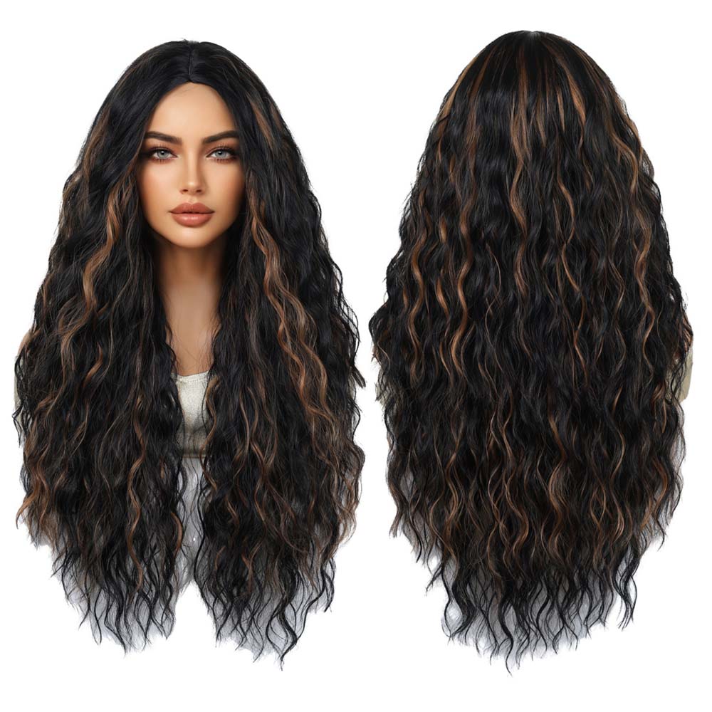 Jessie's Wig Long Curly Wig Black to Dark Brown Ombre with Volume Heat Resistant Synthetic Hair Wigs For Women 28 Inch