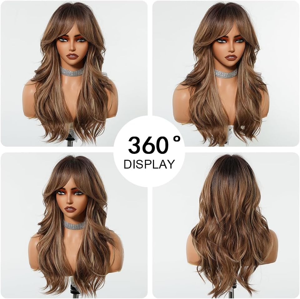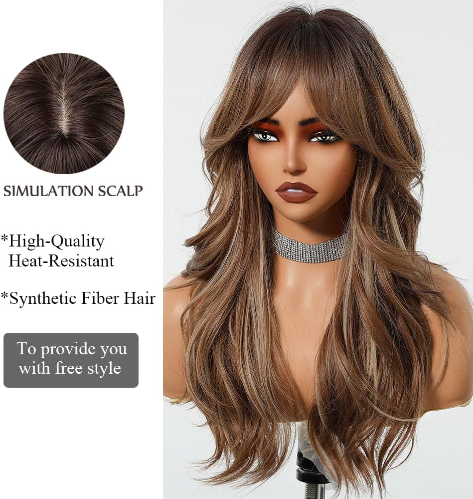 【 Long Ombre mixed Brown wig style】: 150% density natural wave wig touch more soft and fluffy Feel like human hair and scalp