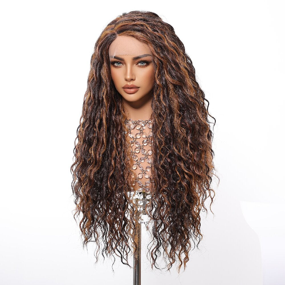 【 Perfect for Any Occasion】:This 26inch curly brown highlight wig is ideal for daily wear, parties, weddings, and travel, offering a vibrant, natural look for any event.