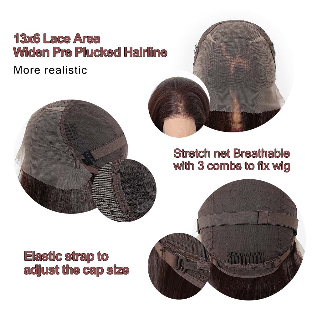 【 Comfortable to wear】: Average cap size, from 22 to 22.5;   High quality elastic net,adjustable straps inside the wig, which can be intertwined to a fixed position to suit different head sizes